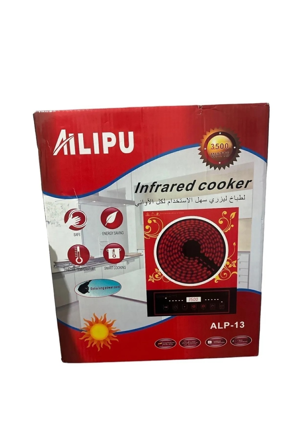 Kama Ailipu alp-13 3500w lazer elektirikli ocak Ailupu alp-13 dokunmatik tek göz elektrikli indüksiyon ocak ; özellikleri: Indüksıyon ocak 100 v-280 v 50/60hz ekran 3500w ; Sürgülü dokunmatik kontrol ; Led ekran ; Plaka boyutu: 281*361mm ; 100% bakır bobin 18*26 (gerçek watt 3500) ; Ürün boyutu: 40*35 ; 8 akıllı pişirme fonksiyonları: Fry, barbekü, süt, sıcak pot, çorba, lapası, düşük yangın, su ; Auto kapanma olmadan 1 dakika ile gemi ; Isıtma koruma sistemi ; Zamanlayıcı ve 24 saat ön ayar fonksiyonu ; 8 seviye sıcaklık ayarı 80-270 santigrat ; 1.5 m kablo uzunluğu"