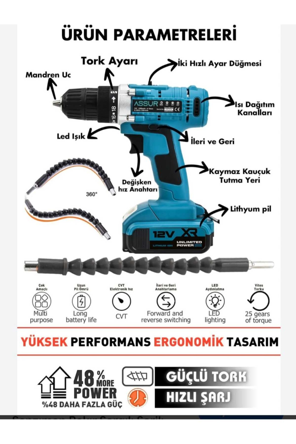 Taşıma çantasının dahil edilmesi sayesinde, matkap ve aksesuarlarınızı kolayca taşıyabilir ve düzenli tutabilirsiniz.; - 12 Volt gücündeki akü ile güçlü sergileyen bu matkap, zorlu işlerin üstesinden gelmenize yardımcı olur.; - Anahtarsız mandren tipi, matkap ucunu hızlı ve pratik bir şekilde değiştirebilmenizi sağlar.; - Normal özellikler, günlük kullanım için ideal olan bu matkabın çok yönlü işlevselliğini artırır.; - Nemli bir bezle silinerek yapılan basit bakım, matkabınızın uzun ömürlü olmasını sağlar.; - İki adet akü bulunması, kesintisiz çalışma imkanı sunarak zaman kazandırır ve verimliliği artırır.; - Elektronik hız ayarı sayesinde farklı malzemeler üzerinde hassas kontrol imkanı verir.; - Türkiye menşeli ürün olmasıyla yerel kalite standartlarına uygunluk ve güvenilirlik sunar.; - Darbeli matkap türü, sert yüzeylerde bile etkin delme performansı sergilerken darbel