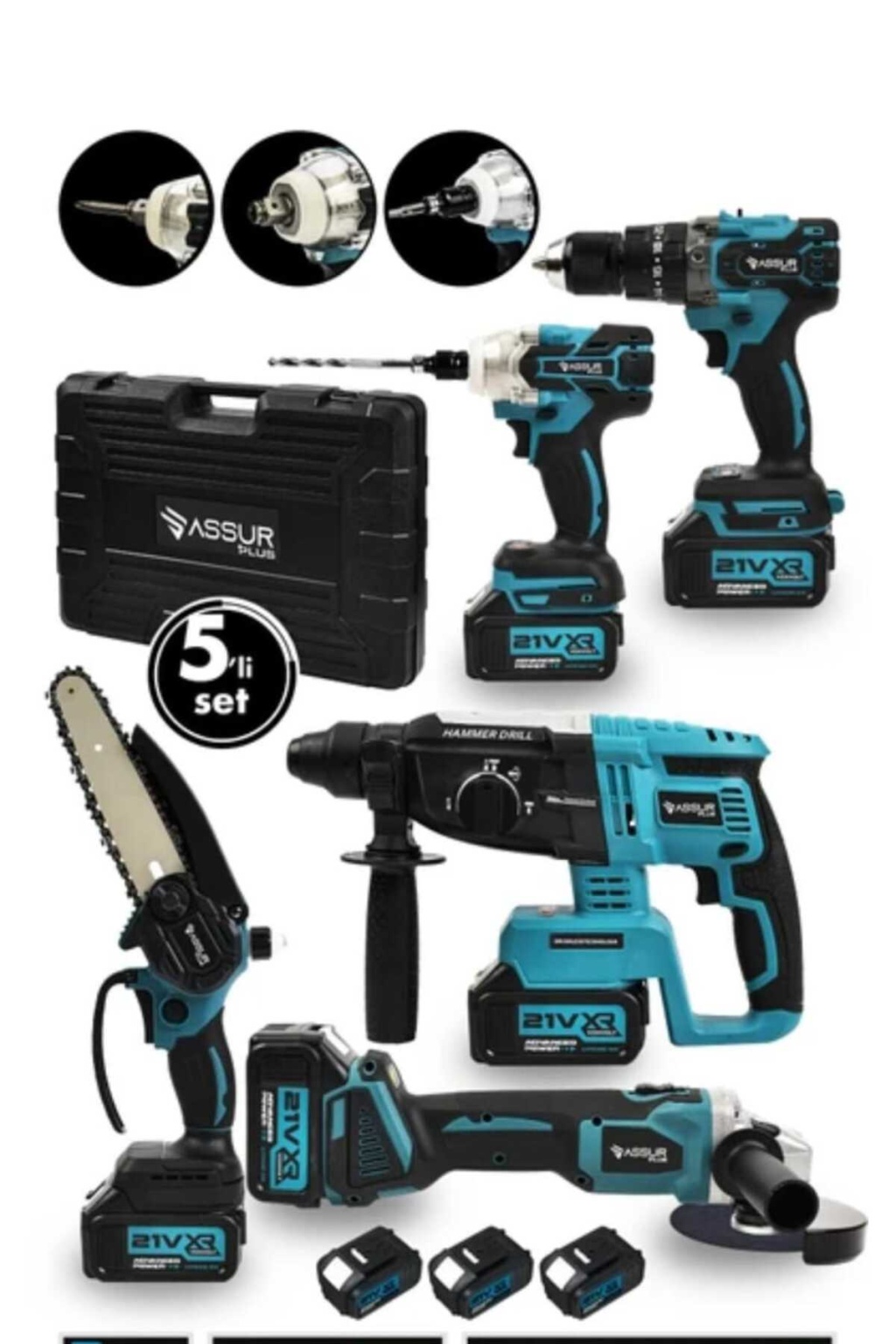 boltoptan5'li Akülü Set, inşaat, tadilat, montaj, otomotiv, bahçe ve atölye işleriniz için tasarlanmış çok yönlü ve güçlü bir akülü el aleti setidir. Set, bir adet taşlama makinesi, bir adet darbeli somun sıkma makinesi, bir adet kırıcı delici hilti, bir adet darbeli vidalama makinesi ve bir adet budama testeresi içerir. 21V XR Li-Ion güçlü bataryası ve kömürsüz motoru (taşlama, somun sıkma, hilti) sayesinde yüksek sunar. 3.0Ah 3 adet aküsü ve 10 pilli dahili bataryası, uzun süreli kullanımlarda bile kesintisiz sağlar. 60 dakikalık hızlı şarj süresi, işlerinize hız kazandırır. Metal şanzıman ve çelik mandren, dayanıklılık ve uzun ömürlü kullanım sağlar. Optimize edilmiş soğutma sistemi, motorların aşırı ısınmasını önler ve performanslarını artırır. 2 konumlu kol, optimum kontrol sağlar. LED aydınlatma, karanlık ortamlarda bile rahat çalışma imkanı sunar. 10 kg'lık hafif tasarımı, kullanımı kolay ve pratiktir. 2 yıl garanti süresi, ürünün kalitesine ve dayanıklılığına olan güveni gösterir.