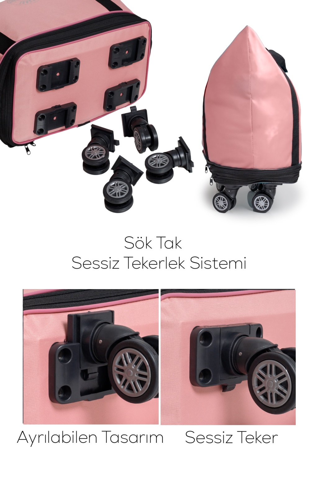 - Pastel pembe rengiyle şıklığı ve zarafeti yanınızda taşıyın, her ortamda göz alıcı bir görünüm sergileyin.; - Unisex tasarımı sayesinde hem kadınların hem de erkeklerin kullanımına uygun, herkesin rahatlıkla tercih edebileceği bir valiz/çanta/bavul modelidir.; - Günlük kullanıma uygun yapısıyla seyahatlerinizde pratiklik sağlar; işe giderken veya tatilde yanınıza alabileceğiniz ideal boyuttadır.; - Sürdürülebilir malzemelerden üretilmiş olup çevre dostu bir seçimdir; doğaya duyarlı tüketiciler için mükemmel bir alternatif sunar.; - Kolay temizlenebilir kumaş materyali sayesinde hijyenik kalmasını sağlayarak uzun süreli kullanım imkanı tanır.; - Dayanıklı kumaşı ile sık seyahat edenler için idealdir; yıpranmaya karşı direnç göstererek uzun ömürlüdür.; - Hem orta boy hem de küçük (kabin) boy seçenekleriyle farklı ihtiyaçlara yönelik çözümler sunar; seyahatlerinizde esneklik kazandırır.; - Türkiye'de üretilmiş olup yerel üretim avantajlarından faydalanmanızı sağlar.; - Düz deseniyle sadeliği ön plana çıkartırken, her türlü kıyafetle kolayca kombinlenebilirliği arttırır.; - Deri detaylarının bulunmaması nedeniyle hafiflik ve taşınabilirlik açısından avantaj sağlar; ağırlık hissi vermez.; - Orta boy + küçük (kabin) boy ölçüleriyle geniş iç hacmi sayesinde tüm eşyalarınızı rahatlıkla sığdırabilirsiniz.