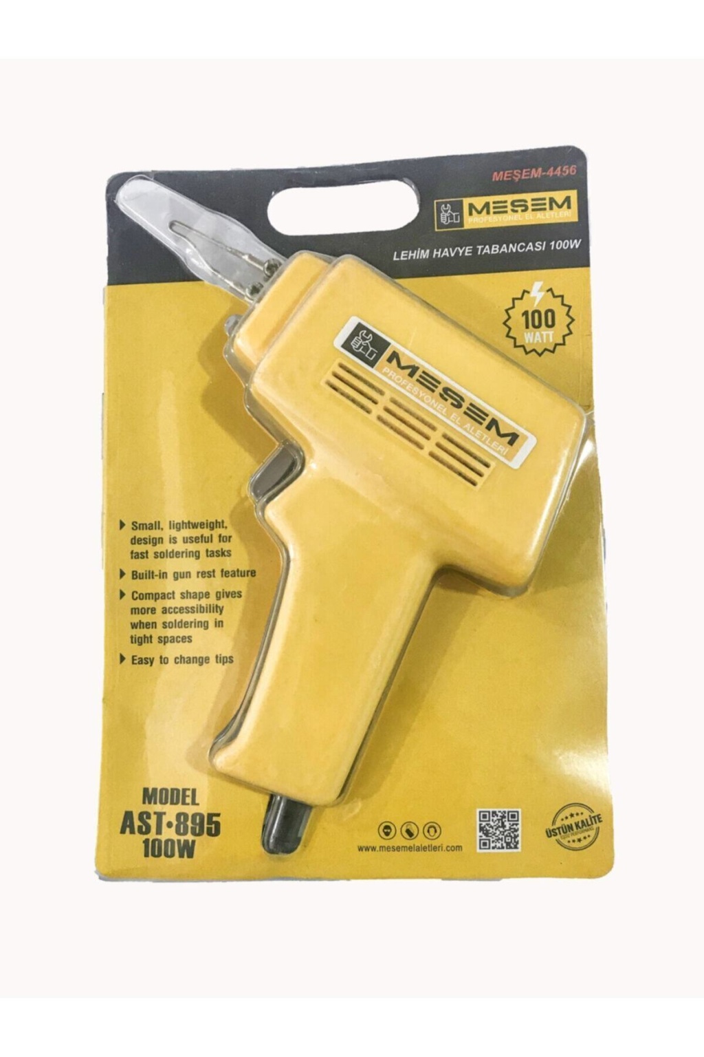MEŞEM ATS 100 Tabanca Havya ev ve atölye kullanımına uygun pratik lehim yapma aracıdır.; ; Ön kısımda bulunan entegre aydınlatma lehim alanın kullanıcı tarafından daha iyi görülmesini sağlar.; ; Birlikte gelen hemen kullan parçaları ile çalışmaya hemen başlayabilirsiniz.; ; Entegre aydınlatma Kolay lehim ucu değişimi Giriş voltajı 230 V | 50 Hz Güç 100 W Max.; ; sıcaklık 500 °C Isınma süresi 12 sn;