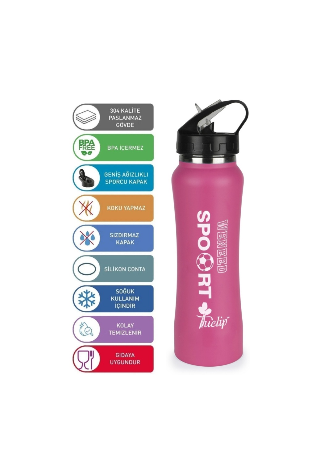 Matara 700 ml Paslanmaz Çelik Suluk Paslanmaz Spor Model Pembe