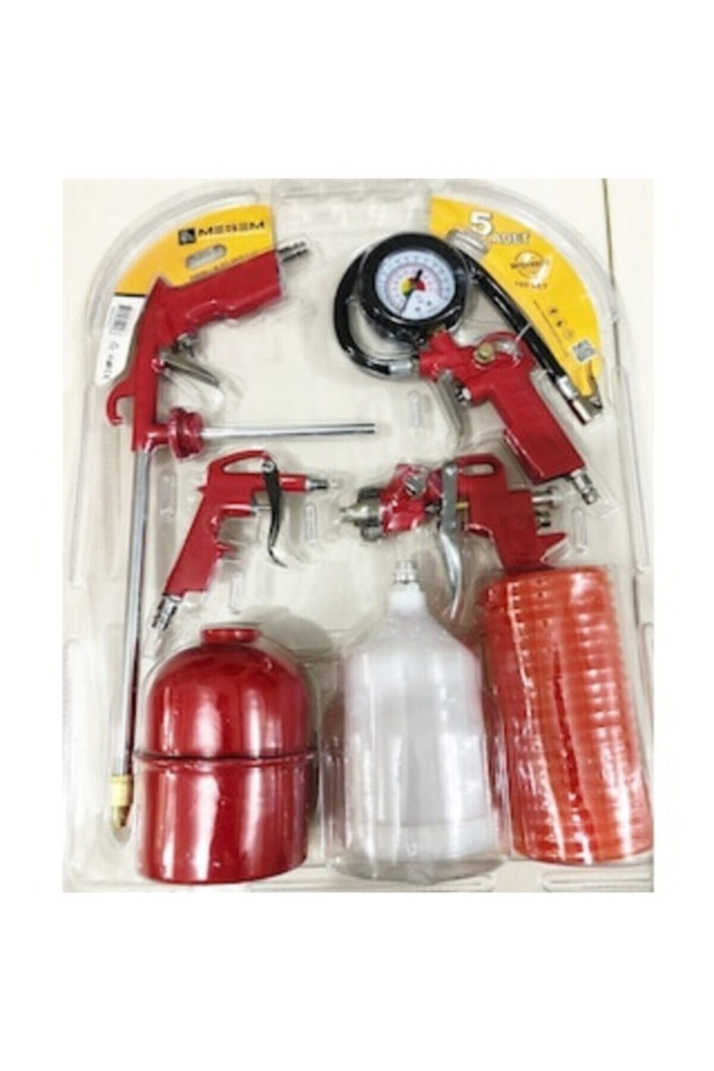 MEŞEM 5 PARÇA HAVALI ALET SETİ PROFESYONEL 1 ADET BOYA TABANCASI ; 1 ADET MAZOT TABANCASI ; 1 ADET HAVA TABANCASI ; 1 ADET SAATLİ LASTİK ŞİŞİRME ; 1 ADET 5 MT. SPİRAL HORTUM ;