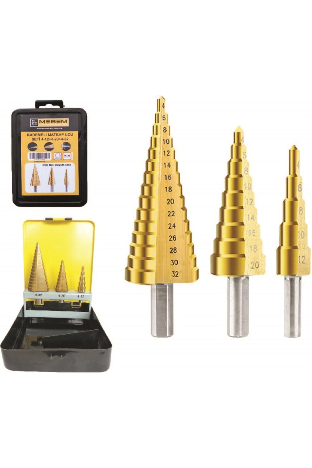 Teknik Özellikler * 4-12 mm / 4-20 mm / 4-32 mm kademeli matkap uçlarından oluşan 3lü set şeklindedir.
