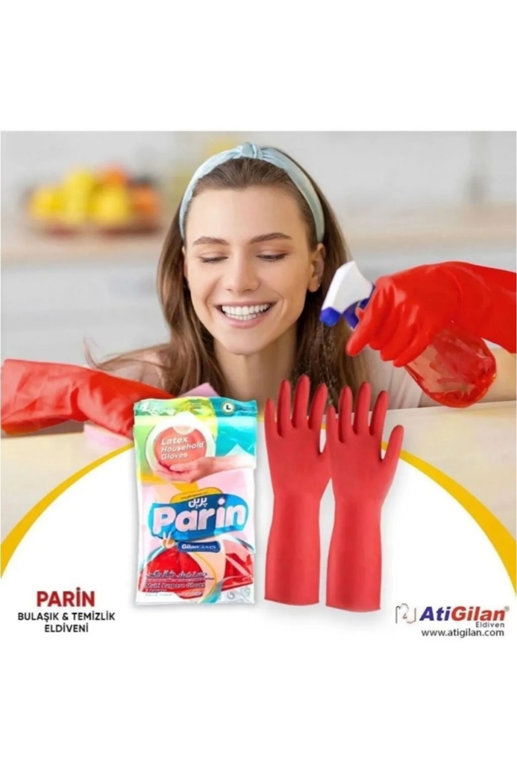 Parin Uzun Konçlu Lateks Bulaşık ve Temizlik Eldiveni, Large, 216 Çift